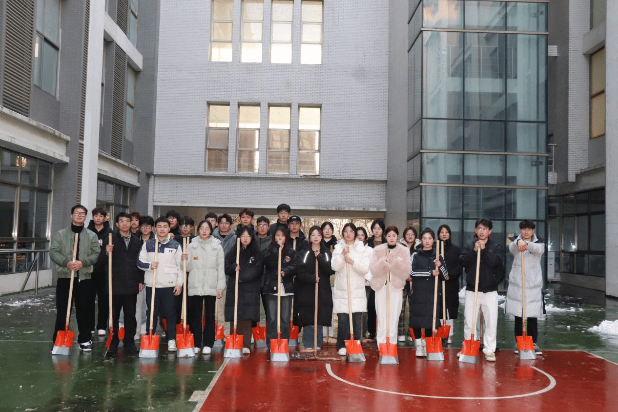 新学期新气象,2月25日,为保证开学第一天的教学活动正常进行,安博网页版领导班子成员、辅导员老师以及部分老师和主要学生干部,开展了扫雪除冰活动。