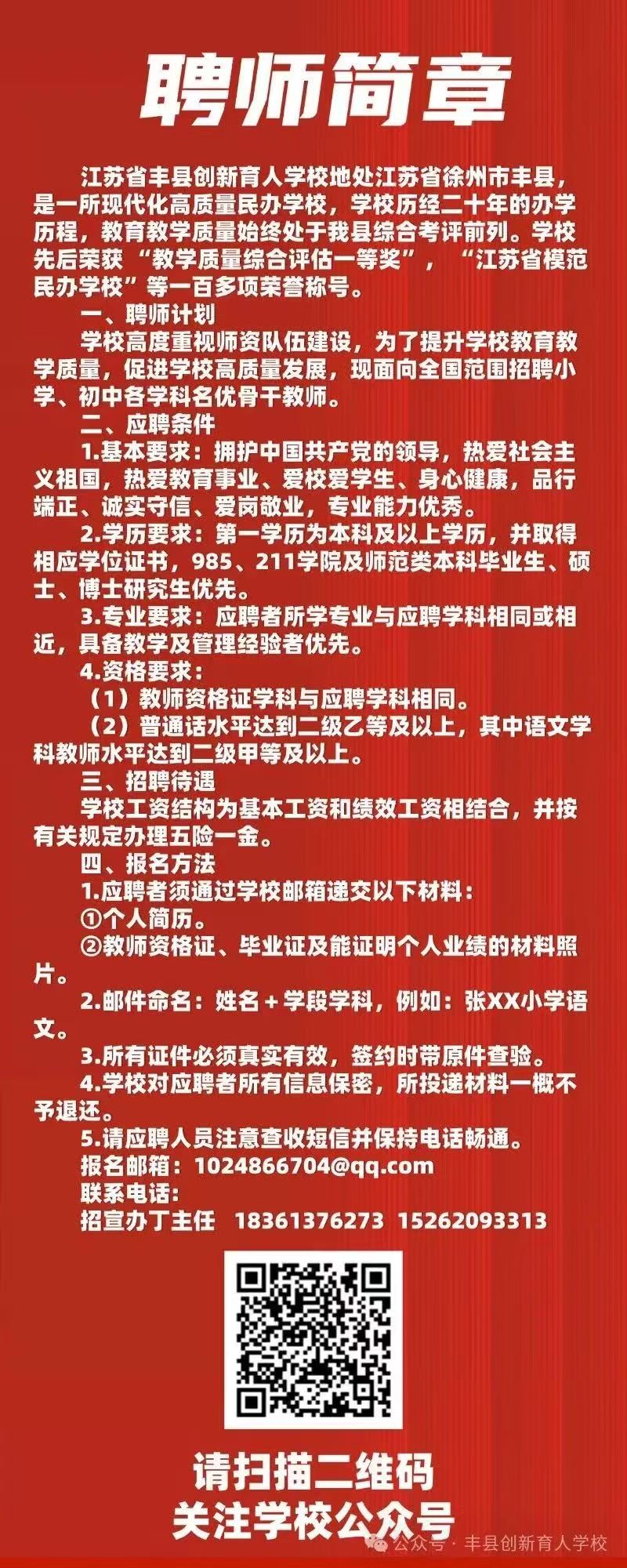 丰县创新育人学校地处江苏省徐州市丰县,是一所现代化民办学校,历经二十年办学历程,教育教学质量始终处于我县综合考评前列。学校先后荣获 “教学质量综合评估一等奖”, “江苏省模范民办学校”等一百多项荣誉称号。