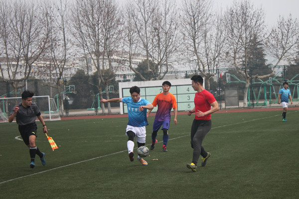 体院新闻网2月28日电 记者(高科熠) 2月28日,新年到了,新的学期也开始了。体院的周周赛事也如火如荼的进行着。中午,我院1602班和1604班,1702班和1804班展开了激烈的足球联赛,双方经过一个多小时的激烈角逐。最终1602班和1604班1:1平局结束了比赛。1702班以13:6的成绩赢得了与1804班的比赛。这次比赛不仅促进了队友们的协助意识更促进了周周赛事的进程。
