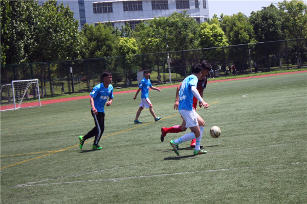 体院新闻网电(记者 金梦颖)2018年5月23日中午,体院1501班与1504班,体院1502班与1503班展开了激烈的足球对抗赛。这是强与强之间的对战,球员们精湛的球技赢得了观众一声声的惊叹。在紧张刺激的比拼后,1501班以2:2与1504班打成了平手,1502班以3:1击败了1503班。
