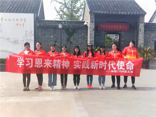 2018年4月26日下午一点半,体院1704团支部开展了以“学习恩来精神,践行新时代使命”为主题参观周恩来读书处旧址的团日活动。在前去的路上她们唱着歌,举起手,唱着“向前进,向前进!革命气势不可阻挡……”在活动中,她们学习、体验、领悟周总理精神,也对周总理平凡而光辉的一生有更为深刻的了解,更加坚定“为中华之崛起而读书”的信念,增强责任感、使命感、和荣誉感。