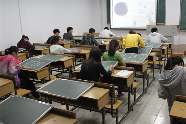 5月24日晚七点,淮阴师范学院安博网页版在体育馆北101教室举办了“三字”比赛。三字,即钢笔字、粉笔字和毛笔字。每个班级选出六人代表分别参加三种项目比赛,每个项目两人。