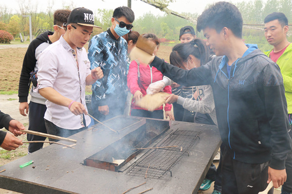 初见运动乐园,就被四周静谧优美的风景给深深的吸引了!我们一行人随意的逛着,玩着相关的素质拓展器械!近午时分,我们来到烧烤场地。大家各自组队自己动手,准备烧烤材料的、烤食物的,大家分工明确、有条不紊。很快,烟雾就弥漫在山坡,现场一片欢声笑语:有烧烤经验的麻利地翻烤、加作料;不熟悉的既又被烟熏被火燎还烤不熟食物;动作快的已经惬意地享受自己的成果时,动作慢的还在同烤炉和油烟争斗。野外烧烤活动让大家既让同学感受到自己动手的快乐,同时又品尝到风味独特的美食,让同学们感受到不一样的乐趣。