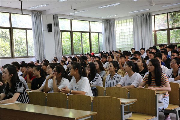 王兆轩老师以 “适应新变化,拥抱新生活”为主题,通过播放幽默的卡通对话视频向新生提出问题“为什么要考大学?”,围绕“前提是理解、接纳和尊重自己的个性”“重点是为自己的选择负责”和“方法是想办法决定心情,理智胜过情感”这三个方面进行由浅入深的讲解。王兆轩提出,在成长过程中要学会享受孤独,上大学是为了遇见更好的自己,为了生命更丰富。最后,他以一段寓意深刻的视频做总结,教育新生——不要想太多。