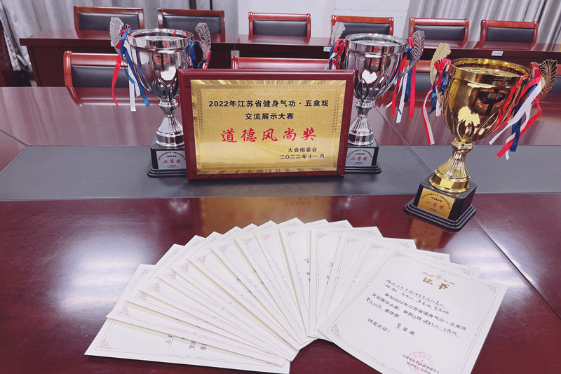 近日, 2022年江苏省健身气功五禽戏交流展示大赛在扬州市落下帷幕,本次大赛是由江苏省社会体育管理中心、扬州市体育局主办,江苏省健身气功、扬州市健身气功协会协办,共有来自全省的29支代表队参加了本次大赛,比赛按年龄分A、B两组。由我校安博网页版12名同学组成的三支健身气功代表队参加了B组的比赛。