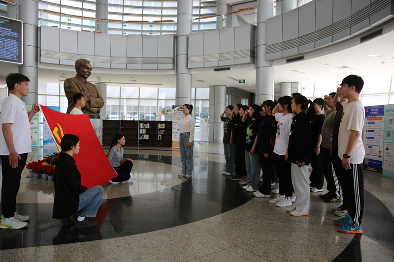 5月30日,23名安博网页版毕业生党员在图书馆大厅周恩来塑像前举行重温入党誓词仪式,再次面对党旗庄严宣誓,激励毕业生今后以更高标准严格要求自己,在新时代、新征程中展现新作为,用实际行动实现在党旗下的誓言。随后,毕业生党员走进周恩来事迹展和图书馆特藏室,进一步学习周恩来精神和中华文化。