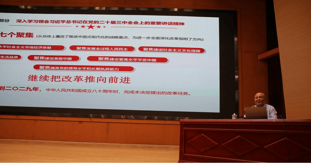 9月11日下午,安博网页版党委和后勤服务集团党委举行专题学习党的二十届三中全会精神专题宣讲报告会。会议由安博网页版党委书记陆林召主持,安博网页版和后勤服务集团全体教职工参加会议。