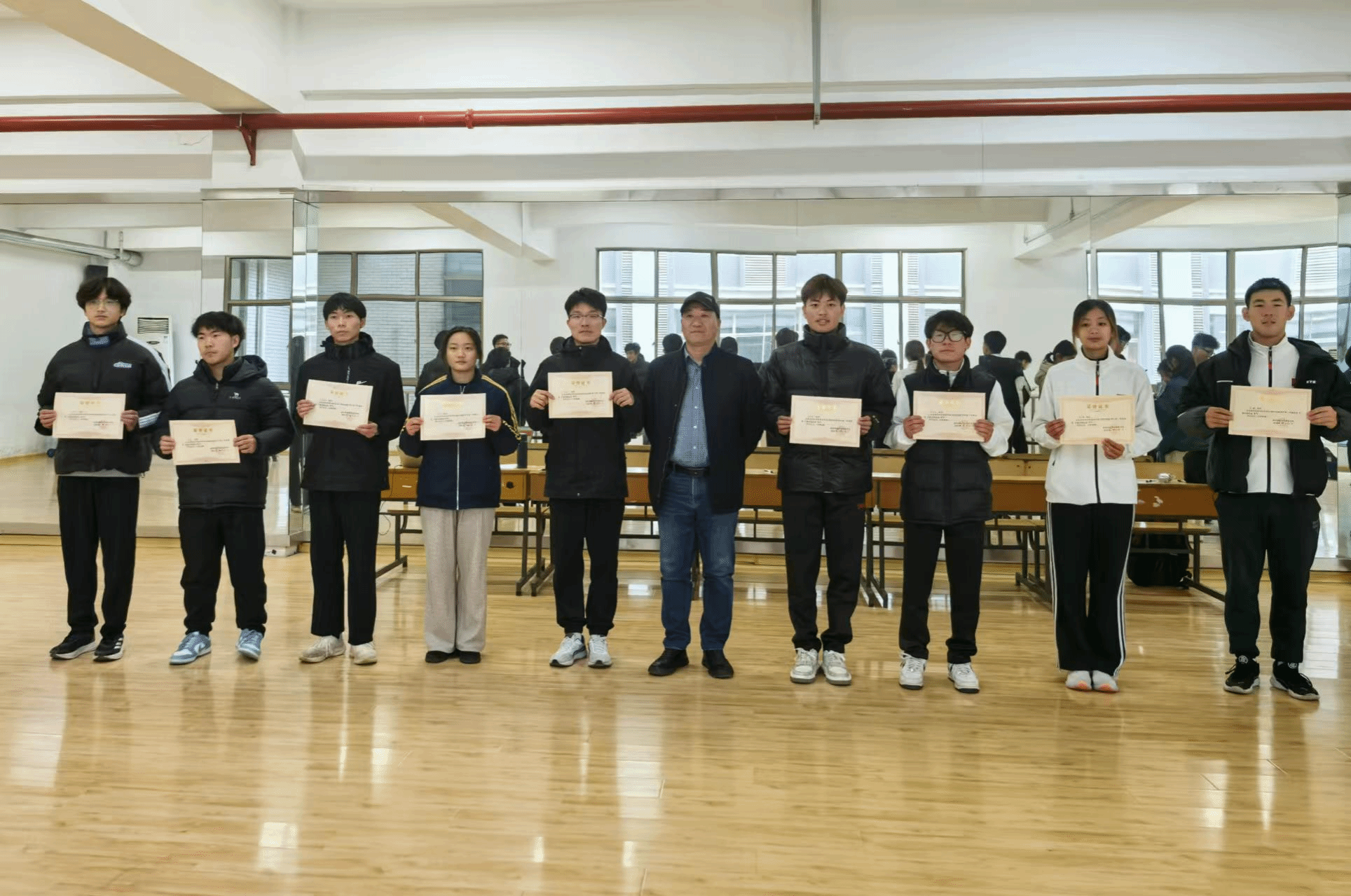 为进一步鼓励学生积极参与早锻炼,培育坚韧的意志品质与良好的运动习惯,安博网页版于2024年12月11日在学院舞蹈房开展了晨练标兵评选活动,此次活动由学院党委副书记周翔、副院长柏建清、体操中心主任李向朝、辅导员颜超龙、学生干部刘昊担任评委,2024级各班参赛者参与活动。