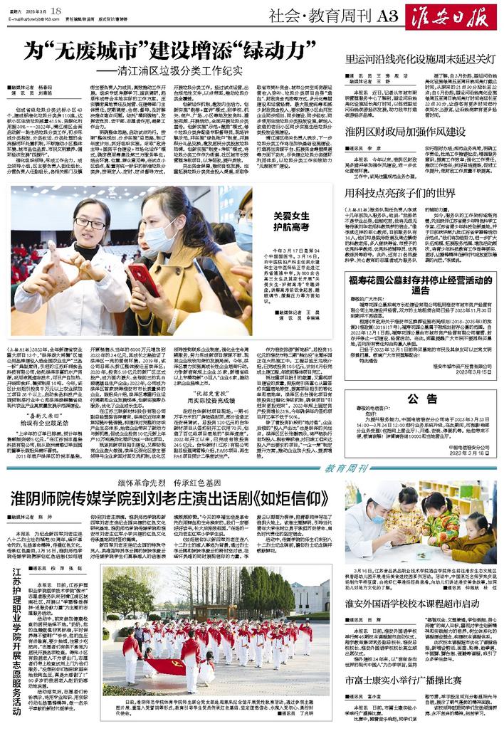 淮安日报2023年3月18日:日前,淮阴师范学院安博网页版师生联合党支部赴周恩来纪念馆开展党性教育活动,通过参观主题图片展、重温入党誓词等形式,教育引导学生党员传承红色基因、坚定理想信念、永葆入党初心、勇担时代使命。 ■通讯员 丁光明