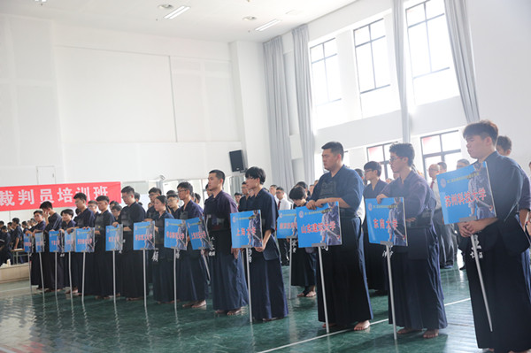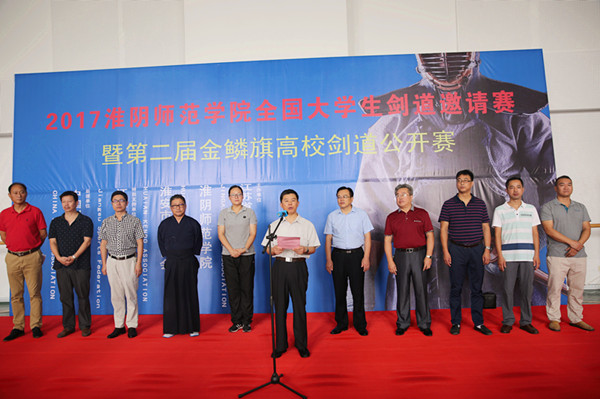 体院新闻网8月6日电(记者朱其锋)8月6日,“2017全国大学生剑道邀请赛暨第二届金鳞旗高校剑道公开赛”在淮阴师范学院体育馆举行。淮阴师范学院党委副书记、纪委书记顾建国,淮安市体育局副局长祁德霞,江苏食品药品职业技术学院副院长张建华,淮安市体育总会秘书长卢伟以及淮阴师范学院、江苏食品药品职业技术学院相关负责同志出席了开幕式。