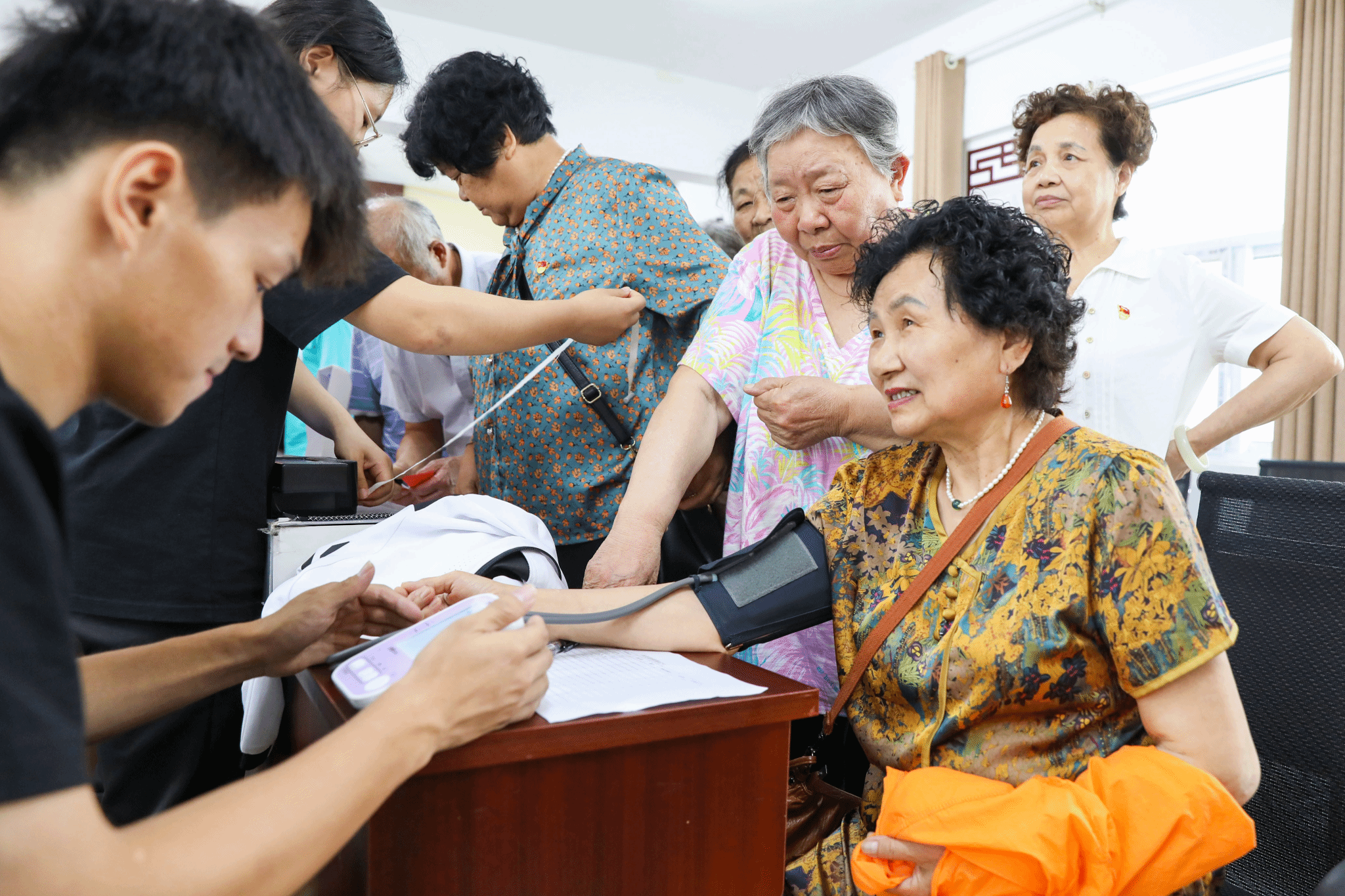 在社区活动中心,大学生们为老党员量血压、体重、测肺活量、灵敏度和力量,利用全新的体质健康测评系统为老党员们进行了体质健康评估,并立足健康游戏训练方式开展趣味体育知识普及和传播。