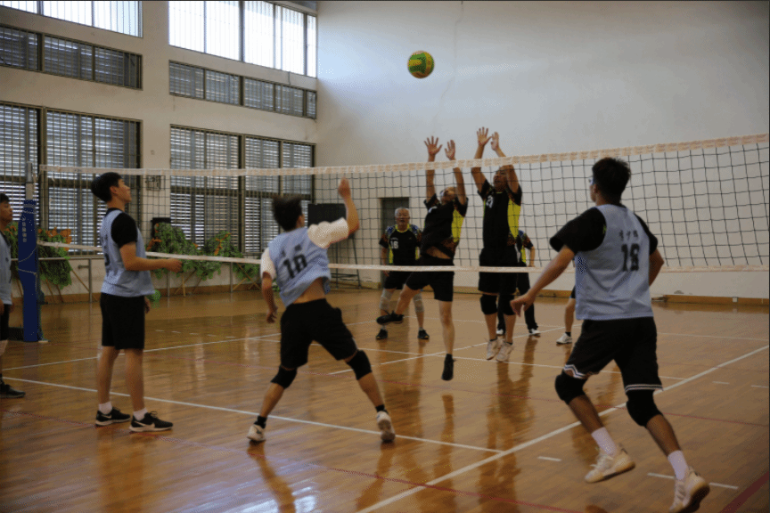 比赛中,关工委老师默契的配合以及精湛的球技,以实际行动为同学们进行教学指导。徐求老师指出,想要打好排球,就要在精进自身球技的同时配合队友,团队赛只有大家都齐心协力才能发挥出最高水平。
